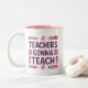 Sorprendente jarra con la cita "Los profesores van a enseñar" rodeada de material escolar