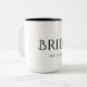 Mugre blanca y negra clásica de novia. Texto elegante en bloque sobre un fondo negro. Las iniciales de novia y novio y la fecha de boda se pueden eliminar borrando el campo de texto.