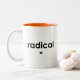 A los oyentes de Radical Personal Finance se les puede recordar lo que son, mientras que al otro lado recuerdan a los de la taza: ¡No esperen lo "ordinario" o "promedio" de este Radical! Diseñado para gente de derecha ("radical" mirando hacia afuera). Puede personalizarse eligiendo otro color para el interior.