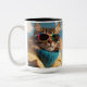 Un lindo tazón de café con una vibración divertida y humorística. La taza muestra una imagen como un personalizado de un gato que parece relajado y fresco, usando gafas de sol. El gato parece despreocupado, como si simplemente estuviera disfrutando del sol. La combinación del gato con las gafas de sol le da a la taza un aire moderno y de moda, perfecto para los amantes del gato que quieran darle un poco de diversión a sus momentos de café diarios. Los colores de la taza son luminosos y alegres, lo que la convierte en un complemento divertido y llamativo de la cocina.