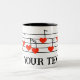 Los notas de la música de corazón rojo sobre un equipo de trinitosos rodean esta taza de café musical. La música personalizada es un gran regalo para cualquier músico o amante de la música. Personalizar al cambiar "Su texto" por un nombre, instrumento musical, fecha de aniversario o cualquier otro texto. Consejo de diseño: Tamaño del texto para flotar agradablemente en el espacio debajo de los corazones musicales.