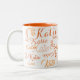 Taza Bicolor naranja moderno con nombres manuscritos blancos