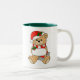 Un Navidad adorable lleva puesto un sombrero de Santa y una bufanda de rayas rojas y blancas. Perfecto como regalo para amigos y familiares.