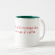 Taza de café personalizada de 444ml. ¡En cuanto a tamaño sólo puedo decir que enorme! pero es lo que esperaba así que estupendo. En el asa me entra la mano entera y no sólo tres dedos como me ocurría con las otras tazas. También comentar que es el tamaño que se ve en las series americanas, tanto para café como para infusión. En cuanto al acabado decir que es correcto, con poco tiempo de uso no puedo especificar mucho más. Pude escoger el nombre y el color pero no la tipografía, quizás esa elección pueda decidir a más gente. En términos generales y por el momento, buena opinión.