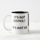 tazón de café con una imagen de dibujo de carbón hecha por Jo Ann Hayden, con escritura, No es justicia, ¡es sólo nosotros!