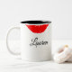 Muñeca de café cerámico mostrada con una huella de labios y una muestra de nombre personalizada. Personalizar este elemento y cambia el nombre al tuyo.