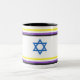This unique design integrates the yellow, white, purple, and black of the nonbinary flag with the foundational elements of the Israeli flag in a mug.