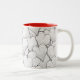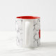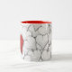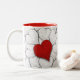Una taza única con un patrón de corazones de cebolla dispersos con un corazón rojo hace un buen regalo para tu San Valentín.
