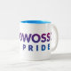 ¡Comparte tu orgullo con el logotipo del gradiente del Orgullo Owosso en una taza de café de dos tonos de personalizable!