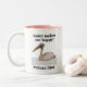 Diseño original de Pelican Bird Two-Tone Coffee Mug de Nisha Prabhu. Comience el día con un toque de encanto costero. Este tazón de café de dos tonos cuenta con un hermoso ilustracion de un majestuoso ave pelícano, que aporta la serena sensación del océano a su cocina. Perfecto para el café, el té o cualquier bebida caliente, esta taza es un regalo delicioso para los amantes de las aves, los amantes de la naturaleza o cualquiera que sueñe con la costa.