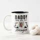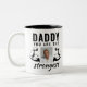 Papá, eres el más fuerte de los cómicos de papá. El papá más fuerte es gracioso tazón con brazos fuertes. Añade tu foto. El texto es tipografía negra. Puedes cambiar cualquier texto en la taza.