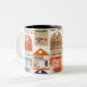 Taza Bicolor Patrón de billetes de viaje de época.