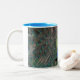El pavo real masculino con sus plumas separó hacia fuera la taza de recubrimiento ancha.