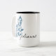 plumas de pavo real crema y nombre verde azulado mug personalizado