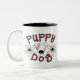 Si usted ama perros que usted amará este diseño lindo del perro que ofrece un blanco con el perro de las manchas marrones, dos flores, y el texto rojo que lee el "perro de perrito" en las camisetas, los llaveros, las bolsas de asas, los mousepads, y más del perro.