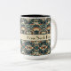 Esta taza transforma tu ritual diario de café o té en un momento de estilo sofisticado. Está bellamente decorado con un diseño Art Deco escandinavo personalizado, con una armoniosa mezcla de formas geométricas audaces y elegantes motivos de un ventilador en una paleta de colores refinados de una marina profunda, verde azulada muda y un naranja cálido y cremoso. El mango duradero de cerámica y ergonomía lo hace perfecto para el uso diario, mientras que el diseño llamativo hace una declaración en cualquier mostrador de cocina o escritorio. Personalice esta taza para crear un artículo único para usted o un regalo atento. Puedes añadir un nombre como "Robert's Mug" o un título profesional como "The Boss". También es perfecto para una ocasión especial con textos como "Profesor del año 20xx" o una frase graciosa como "Alimentado por el café y el caos". Para un regalo preciado, agregue un nombre familiar, como "La familia Miller", o una fecha hito.