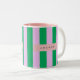 Taza Bicolor Personalized Fresh Green and Pink Striped Retro