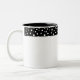 El tazón de café se muestra en blanco con una tierna impresión de puntos de polka en blanco y negro sobre el guarnecido. Personalizar este artículo y elige otro estilo de taza o compra tal cual.