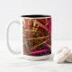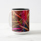 En el original y abstracto arte de este Mug, el disturbio tropical de colores se hizo a partir de una fotografía original de ZoeSPEAK de sierra palmetto. Algunas palmeras siguen siendo verdes, pero otras se han transformado en rosados calientes y rojos, amarillos, azules y marrones cálidos, mientras zigzaguean entre sí en el pinar.