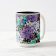 A vibrant, abstract, modern digital artwork featuring elegant, crystal-like flowers in shades of purple, green, and white, set against a background of mixed brown sand chips for a textured, earthy look.