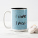 Disfruta de tu café matutino con un divertido Purpurina azul que lo hice incómodo café. Mug design presenta el texto "He venido. Vi. Lo hice incómodo". en una letra manuscrita. Se ofrecen regalos adicionales con este diseño y una variedad de colores.
