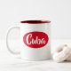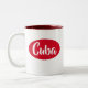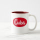 Una taza blanca y roja que dice "Cuba". Un diseño sencillo y agradable que destaca desde lejos.