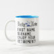 Taza de café personalizada de 444ml. ¡En cuanto a tamaño sólo puedo decir que enorme! pero es lo que esperaba así que estupendo. En el asa me entra la mano entera y no sólo tres dedos como me ocurría con las otras tazas. También comentar que es el tamaño que se ve en las series americanas, tanto para café como para infusión. En cuanto al acabado decir que es correcto, con poco tiempo de uso no puedo especificar mucho más. Pude escoger el nombre y el color pero no la tipografía, quizás esa elección pueda decidir a más gente. En términos generales y por el momento, buena opinión.