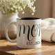 Regalo de nueva mamá establecida - Bolsa de mano con elegante letra negra minimalista Regalo para mamá - Agregue su "Est" personalizado año establecido fecha en que nació su primer hijo. Agregue años adicionales para cada hijo.