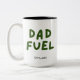Mug personalizada "Dad Fuel" con gráfico verde oscuro y el nombre de papá en negro. Esto sería un gran regalo para el Día del Padre, el Cumpleaños o las Vacaciones, o como regalo de Baby Shower para papá.