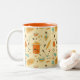 Utensilios de cocina retro en naranja, amarillo, turquesa y marrón.
