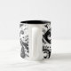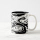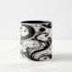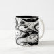 Es una taza rápida de color blanco y negro. El diseño usando patrones únicos será un apoyo sensual en tu mano.