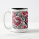 Mugre blanca impresa con rosas rosadas de arte digital con interior negro.