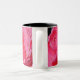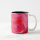 La fotografía original de MaeFlowers en este Mug es un armario cerrado de dos rosas de escalada rosa brillante, frescos del jardín. Los pétalos rosas, en luz y sombra, son muchos tonos rosas, de pálido a profundo. Un rosa nos enfrenta directamente, mostrando las puntas de los pétalos a medida que se van acercando al centro. El otro rosa, al lado y ligeramente detrás del primero, está un poco inclinado hacia el lado. Están descansando sobre una superficie gris de textura clara, sobre un fondo negro.