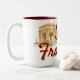 Una hermosa taza de café cuenta con uno de los emblemáticos monumentos de San Francisco, el Palacio del Bella Artes, con el nombre de San Francisco en colores marrones y naranjas, perfecto para recuerdos, regalos y más.