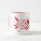 Una taza de moda cubierta de corazones dibujados a mano, flechas y la palabra "amor" en un estilo minimalista. Perfecto para los románticos modernos.