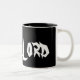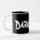 Taza negra que dice al señor oscuro en las letras blancas con un borde blanco.