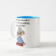 Taza de café personalizada de 444ml. ¡En cuanto a tamaño sólo puedo decir que enorme! pero es lo que esperaba así que estupendo. En el asa me entra la mano entera y no sólo tres dedos como me ocurría con las otras tazas. También comentar que es el tamaño que se ve en las series americanas, tanto para café como para infusión. En cuanto al acabado decir que es correcto, con poco tiempo de uso no puedo especificar mucho más. Pude escoger el nombre y el color pero no la tipografía, quizás esa elección pueda decidir a más gente. En términos generales y por el momento, buena opinión.