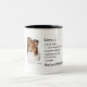 Taza de café personalizada de 444ml. ¡En cuanto a tamaño sólo puedo decir que enorme! pero es lo que esperaba así que estupendo. En el asa me entra la mano entera y no sólo tres dedos como me ocurría con las otras tazas. También comentar que es el tamaño que se ve en las series americanas, tanto para café como para infusión. En cuanto al acabado decir que es correcto, con poco tiempo de uso no puedo especificar mucho más. Pude escoger el nombre y el color pero no la tipografía, quizás esa elección pueda decidir a más gente. En términos generales y por el momento, buena opinión.