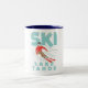 Gráfico que dice: Ski Lake Tahoe. El divertido diseño del esquí para las próximas vacaciones de esquí en las montañas en invierno.