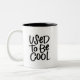 ¡Cómo estamos empezando a sentirnos últimamente! La taza con letras de mano muestra la frase "Solía ser Guay" por un lado y "Así Guay hace mucho" con una pequeña taza en la esquina inferior al revés.