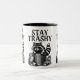 Un ilustracion vintage de un mapache que atraviesa la basura