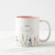 Este verano multicolor flor mrs recién casada taza de café de novia es un regalo perfecto para la novia o la novia para una ducha de boda moderna. El diseño se compone de acuarelas rosas, ruidosas, violetas, rojas, borgoñas, amarillas, blancas y mariposas con una vegetación bien integrada en elegantes ramos florales.