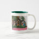 Taza de cerámica blanca bonita, interior verde, con la foto de la natividad en exterior y las palabras: ¡Felices Navidad ..... grandes para sus reuniones del navidad!