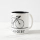 Taza Bicolor Texto del cicólogo con bicicleta gris