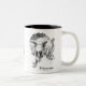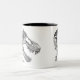 ¡Comience su mañana de la derecha! Tenga un poco de café en una taza con los dibujos de la reproducción del rex y del Triceratops del Tyrannosaurus que van comparativos. Los dinosaurios están en la exhibición en el Museo Nacional de la historia natural, en Washington, DC.