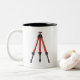 Esta taza es perfecta para cualquiera que siempre esté de viaje. Cuenta con un diseño divertido y peculiar con un trípode y una cita.