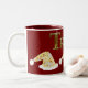 Taza de café personalizada de 444ml. ¡En cuanto a tamaño sólo puedo decir que enorme! pero es lo que esperaba así que estupendo. En el asa me entra la mano entera y no sólo tres dedos como me ocurría con las otras tazas. También comentar que es el tamaño que se ve en las series americanas, tanto para café como para infusión. En cuanto al acabado decir que es correcto, con poco tiempo de uso no puedo especificar mucho más. Pude escoger el nombre y el color pero no la tipografía, quizás esa elección pueda decidir a más gente. En términos generales y por el momento, buena opinión.
