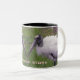 Una cigüeña de madera fluffs sus plumas. - La fotografía original en esta taza muestra una cigüeña de madera fluffing sus plumas. Este pájaro salvaje de mirada inusual tiene plumaje blanco sobre plumas negras del ala, piernas finas largas y un pico marrón largo que las formas cónicas de la cabeza a la extremidad curvada. El cuello de la cigüeña se cubre en pequeñas plumas grisáceas con una banda negra en la corona. y el resto de la cabeza parece casi implume. La cigüeña, una especie en peligro, nos está mostrando su perfil de la foto, mirándonos con un ojo morado. La foto se mueve de un tirón y se repite en el otro lado de la taza, y hay texto en el centro cerca de la parte inferior de las imágenes combinadas que dice LA CIGÜEÑA DE MADERA. Esto puede ser cambiada o ser suprimida.