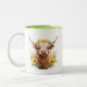 bonito linda vaca de tierras altas, corona de flores de girasol amarilla, girasoles en la cabeza de cuernos, flores y cuernos de toro, ilustracion de pintura artística acuarela, hermoso rancho de ganado escocés, campo de prado natural silvestre, ambiente de primavera de granja de verano, agricultor de vaqueros, adorable dulce brillante florido