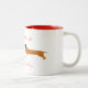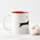 Valentine Dachsund Mug. Mi diseño digital tiene dos perros dachsund mirándose entre ellos con un mensaje encima y debajo de la imagen. Puede elegir fácilmente el tipo de letra y el color del texto en las plantillas de texto. Llénalo con dulces, flores o café para tu novia. Si te gusta lo que ves, pero no ves lo que necesitas, por favor contacta conmigo para pedir un personalizado. Para sus pedidos y problemas de envío, póngase en contacto con el Servicio de Atención al Cliente de Zazzle a través de https://goo.gl/nCgptf